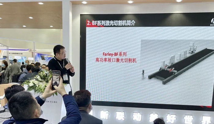 為讓與會者更直觀感受激光智造的奇妙體驗(yàn),華工激光帶來 交互式激光文創(chuàng)定制自動(dòng)化線 。