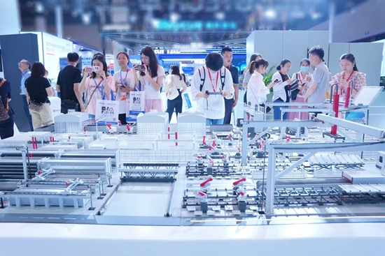 現(xiàn)場(chǎng)展出的重工行業(yè)智能工廠模型是基于華工科技為太原重工打造的標(biāo)桿案例,模型由板材下料產(chǎn)線、型材下料產(chǎn)線、焊接產(chǎn)線、涂裝產(chǎn)線、裝配產(chǎn)線五大核心生產(chǎn)線組成,展示了重工行業(yè)的生產(chǎn)工藝流程、產(chǎn)線布局、物流轉(zhuǎn)運(yùn)規(guī)劃等內(nèi)容,通過該款模型,觀眾能夠直觀地體驗(yàn)重工業(yè)智能工廠的科技魅力和無限潛力。