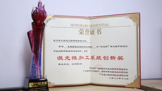 12月18日,第五屆“紅光獎“頒獎典禮在深圳順利舉行,獎項由中國激光行業(yè)創(chuàng)新貢獻(xiàn)獎組委會、激光制造網(wǎng)聯(lián)合業(yè)界權(quán)威專家及國內(nèi)多家激光行業(yè)協(xié)會、激光學(xué)會、激光產(chǎn)業(yè)聯(lián)盟共同打造,華工激光車載攝像頭焊接智能裝備獲得“激光微加工系統(tǒng)創(chuàng)新獎”。