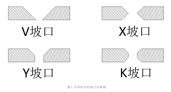 根據(jù)材料厚度和焊接質(zhì)量需求,市面上主要的坡口形式有V型坡口、Y型坡口、X型坡口、K型坡口,如圖1所示。V坡口和Y坡口是單面焊接,切割和后期焊接過程都較為便利,缺點是焊后容易變形。當焊件厚度增大時,一般采用X坡口或K坡口,同樣厚度下可減少焊縫金屬量約1/2,對稱施焊,焊后變形小,缺點是焊接過程中要翻轉(zhuǎn)焊件,在筒形焊件的內(nèi)部施焊,需耗費一定的時間、人力成本。