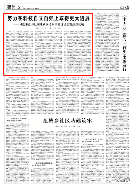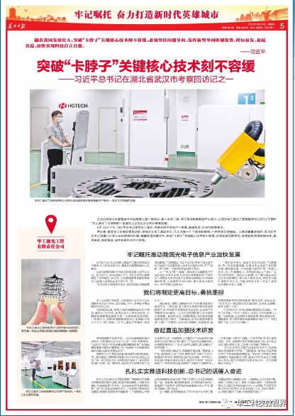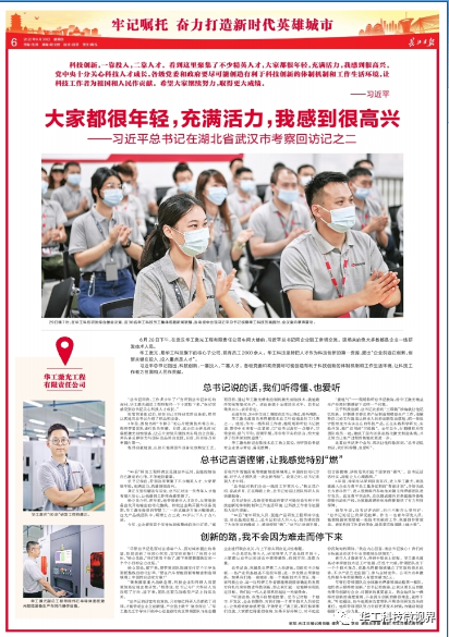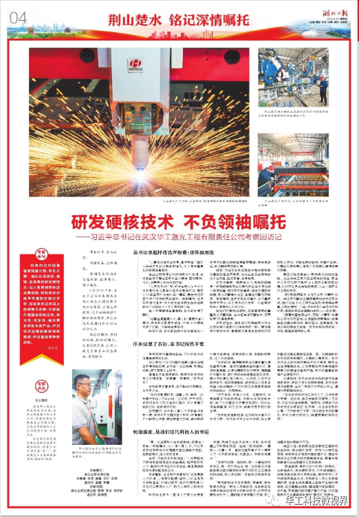 6月28日,習近平總書記在湖北省委書記王蒙徽、省長王忠林陪同下,來到華工科技子公司武漢華工激光工程有限公司考察,在公司全體員工中引發(fā)熱烈反響,大家紛紛表示:“將深入踐行習近平總書記考察時的重要講話精神,踔厲奮發(fā),為實現(xiàn)科技自立自強貢獻力量”。人民日報、央視新聞聯(lián)播、央視新聞、湖北日報、湖北電視臺、長江日報等多家主流媒體對華工科技展開回訪,并進行了全方位、多視角報道。