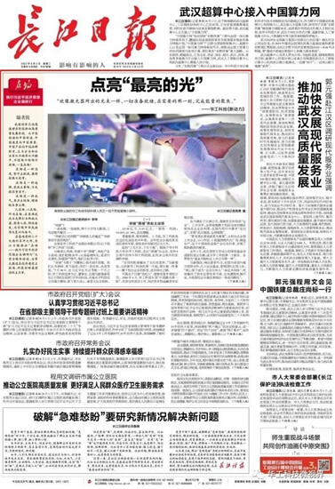 《長江日報》頭版頭條報道華工科技點亮“最亮的光”