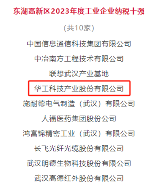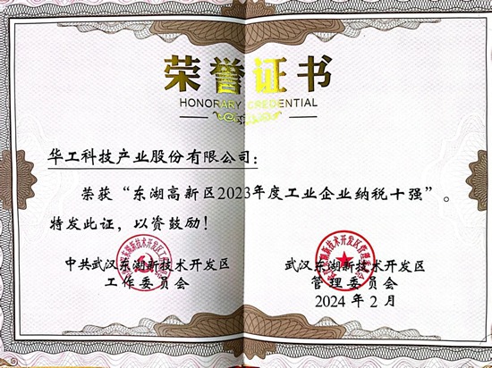 華工科技連續(xù)多年獲評“東湖高新區(qū)2023年度工業(yè)企業(yè)納稅十強(qiáng)”稱號