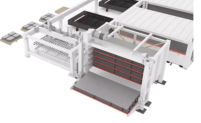 實現(xiàn)物料立體存儲,自動出入庫,配套數(shù)控沖床、激光切割機、數(shù)控折彎機等鈑金設備