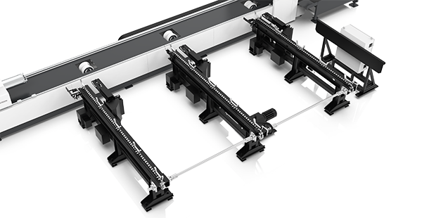 床身安裝有托舉裝置,當需要托舉管材時相應(yīng)的托舉架會升起,當X軸移動時靠近X軸的相應(yīng)托舉架會自動落下,以避免干涉。