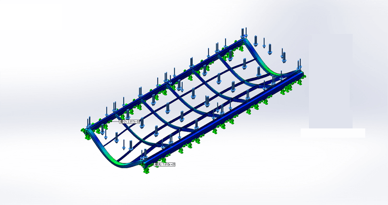 床身結(jié)構(gòu)剛性運(yùn)用有限元分析設(shè)計(jì)和整體板焊接時效工藝,有效確保設(shè)備長期穩(wěn)定運(yùn)行