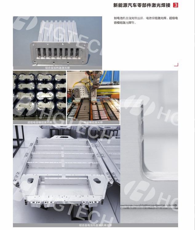 為客戶提供車身零部件、傳動(dòng)零部件、新能源汽車零部件激光焊接等服務(wù),如車頂/尾門激光釬焊、車門飛行焊、車身/地板激光螺旋電焊、座椅零部件激光焊、防撞梁安全激光焊、差速器激光焊、雙聯(lián)齒輪激光焊、離合器轉(zhuǎn)轂激光焊、傳動(dòng)軸激光焊、電池托盤激光填絲焊、電池模組激光焊、超級(jí)電容模組激光焊等。