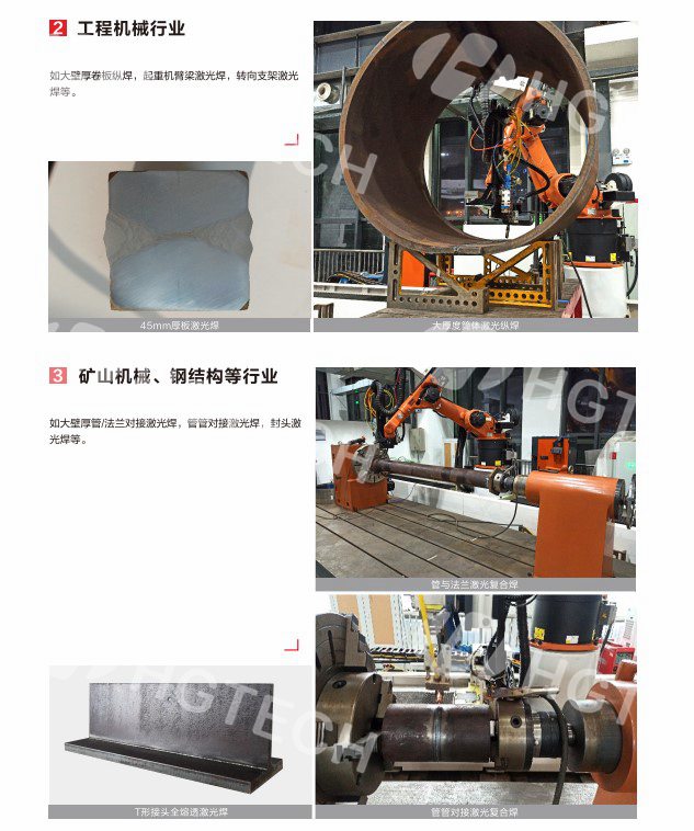 為客戶提供軌道交通、工程機(jī)械、船舶制造、鋼結(jié)構(gòu)等領(lǐng)域中厚板的高效焊接服務(wù)。常用工藝有窄間隙厚板/超厚板激光填絲焊、激光電弧復(fù)合焊等,厚度可覆蓋5-50mm。
